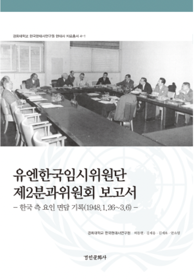 2015년 한국연구재단이 지원하는 중점연구소로 선정된 경희대학교 한국현대사연구원은 2년 동안의 연구 성과물로 『한국문제 관련 유엔문서 자료집(1948~1949)』(상·하)(2017)와 『한국전쟁 관련 유엔문서 자료집』(1~3)(2018), 총 5권을 발간한 바 있다. 본 자료집 『유엔한국임시위원단 제2분과위원회 보고서 -한국 측 요인 면담 기록-』은 ‘유엔과 한국문제’에 초점을 맞춘 본 연구원 중점과제의 세 번째 성과물로, 유엔한국임시위원단(UNTCOK)이 1948년 5·10 선거에 관한 자신들의 활동을 기록한 보고서[원제: First part of the report of the United Nations Temporary Commission on Korea, VolumeⅢ(1948), 약칭 A/575/Add.2] 가운데 포함되어 있는 부속문서 일부 (Annex X, XI)를 완역한 것이다. 유엔한국임시위원단(이하 임시위원단)은 1947년 11월 14일 제2차 유엔총회의 결정으로 조직되었다. 통일임시정부 수립을 지원하기 위한 미소공동위원회가 결렬되자 ‘한국문제’는 미국의 제안으로 유엔에 이관되었다(1947.9.17). 이어서 미국, 소련, 중국, 영국의 4개국 회담에 한반도 통일문제를 상정하려는 시도가 소련의 반대에 직면하자 미국은 임시위원단의 파견을 통한 통일(임시)정부 수립 지원이라는 해결방안을 제시했고 총회의 승인을 얻게 되었다. 1948년 1월 서울에 도착한 임시위원단은 남한의 정치지도자들과 협의하는 한편, 북한 측 정치지도자들과도 접촉을 시도하였다. 그러나 총선거를 위한 자유로운 분위기의 조성은 순조롭지 못했을 뿐더러 위원단의 북한 지역 진입이 거부되는 등 현지에서의 임무수행은 난관에 봉착했다. 더 이상의 필요한 조치를 찾기 어려웠던 임시위원단은 유엔소총회와의 협의를 통해 향후의 활동방향을 모색하였고 마침내 ‘임시위원단의 접근이 가능한 지역’ 즉 남한에서의 총선거 실시라는 유엔의 결정을 통보받았다. 그 후 임시위원단은 총선거 실시 감독의 임무를 수행하는 한편, ‘전반적으로 자유로운 분위기’ 속에서 선거가 치러졌다는 내용의 보고서를 작성했고 이 보고서는 제3차 유엔총회에서 대한민국이 유엔한국임시위원단의 접근 가능 지역에서 실시된 총선거를 통해 수립된 합법정부임을 승인하는 근거가 되었다. 유엔한국임시위원단 활동 보고서가 해방 후 한국현대사 연구의 기초사료로서 중요한 의미를 갖는 이유이다. 임시위원단이 유엔총회에 제출한 보고서는 5·10선거를 전후로 하여 크게 두 부분으로 나누어진다. 첫째는 제1부, 1948년 1월 12일부터 5월 24일까지의 활동내용에 관한 기록(First part of the report of the United Nations Temporary Commission on Korea, Vol.1~3)이고 둘째는 제2부, 5월 25일부터 10월 14일까지 대한민국 정부수립 후의 활동 요약(Second part of the report of the United Nations Temporary Commission on Korea, Vol.1~2)이다. 1965년 국회도서관 입법조사국이 번역·발간한 『1948년도 국제연합한국임시위원단 보고서』는 바로 이 보고서 제1부 제1권(Vol.1)에 해당하는 것으로, 대한민국 정부수립과 관련하여 유엔 및 임시위원단의 역할에 관한 연구를 촉발시키는 데 크게 기여하였다. 그런데 제1권의 내용이 임시위원단의 창설과정, 위원단의 권한 및 조직구성, 한국의 정치상황 등 주로 위원단 조직 자체와 그 환경에 관한 사실들이라면, 제3권은 임시위원단이 남한지역에서 실제로 수행한 임무와 활동의 전 과정을 포괄하는 것으로, 그 가운데 본 자료집은 총선거를 둘러싼 한국인의 여론을 파악할 수 있는 부분(Annex 10,11)을 전문 번역한 것이다. 제3권의 전체 구성은 “자유로운 선거분위기에 관한 인터뷰 및 구술기록”(A575/Add.2, Annex 9), “한국 측 요인에 대한 인터뷰 및 구술 기록”(A575/Add.2, Annex 10), “남북한의 선거법 및 선거규칙에 대한 요인들의 견해”(A575/Add.2, Annex 11), “유엔한국임시위원단 선거감시반의 1948년 5·10 선거에 대한 관찰 기록”(A575/Add.2, Annex 12)의 4가지 부속문서로 이루어져 있다. 이들 문서들이 2월 하순경부터 3월 초에 걸친 짧은 시일 내에 작성될 수 있었던 것은 임시위원단 산하에 설치된 3개 ‘분과위원회(sub-committee)’와 ‘선거감시단’의 체계적인 역할 분담과 신속한 활동의 결과였다. 첫째, 자유로운 선거분위기 보장을 위한 방안을 강구하는 임무를 맡은 제1분과위원회는 미군정의 임시위원단 연락 장교 웨커링(John Weckerling) 준장(1948.2.19), 주한 미 군정장관 윌리엄 딘(William F. Dean) 소장(1948.2.24~3.5), 미군정 특별고문 퍼글러(Dean Charles Pergler)와 프랑켈(Ernest Fraenkel) 박사(1948.2.26), 주한 미군 사령관 하지(John R. Hodge) 중장(1948.3.3) 등 미군정 인사들을 대상으로 인터뷰를 실시하였다. 이를 통해 자유로운 선거 실시의 가능성 여부에 관련된 치안을 비롯한 한국사회의 사정과 당면 문제점, 선거관련 한국의 기존 법규와 미군정 법령 등을 조사했다. 둘째, 제3분과위원회는 남북한의 선거법 및 규정을 검토하는 역할을 담당했다. 인터뷰를 통해 유권자와 후보자의 연령 제한, 부적격자의 자격 제한에 관한 남북한 법률 조항의 차이, 부일협력자의 선거 참여 문제, 문맹자의 투표권, 국회의원 정족수 등에 관한 견해를 조사하였으며 그 결과를 답변자의 좌, 우, 중도의 정치성향별로 구분하여 정리했다. 셋째 